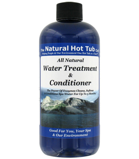 Hot tub or spa All Natural Water Treatment & (and) Conditioner is a unique combination of natural enzymes that significantly decreases the need to add Chlorine or Bromine and ALL other chemicals in your hot tub water.